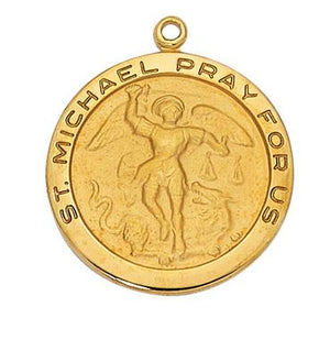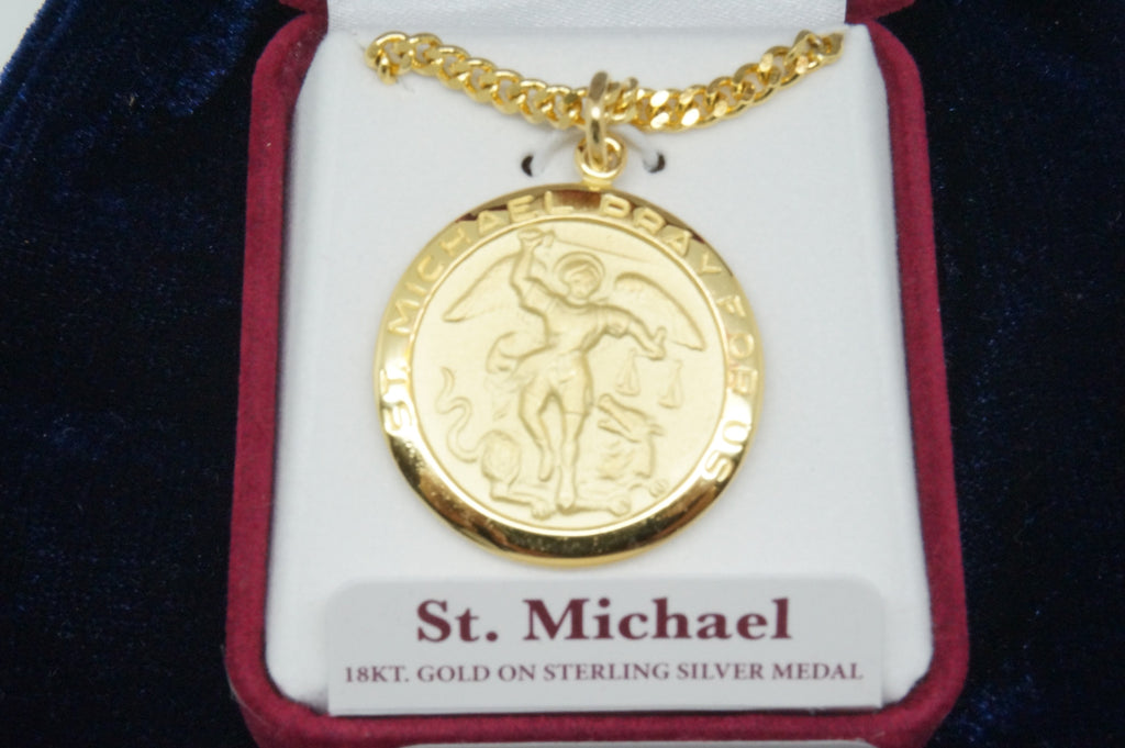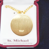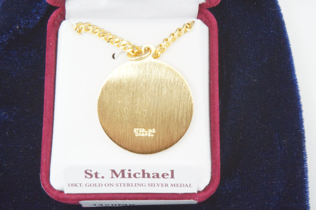 The Gold Saint Michael Medal 1" with Chain is crafted from quality materials, including Gold and Sterling Silver (925 Silver). This set includes a Prayer Card and arrives in a deluxe, elegant box for added sophistication. Original packaging is also included for added convenience.
