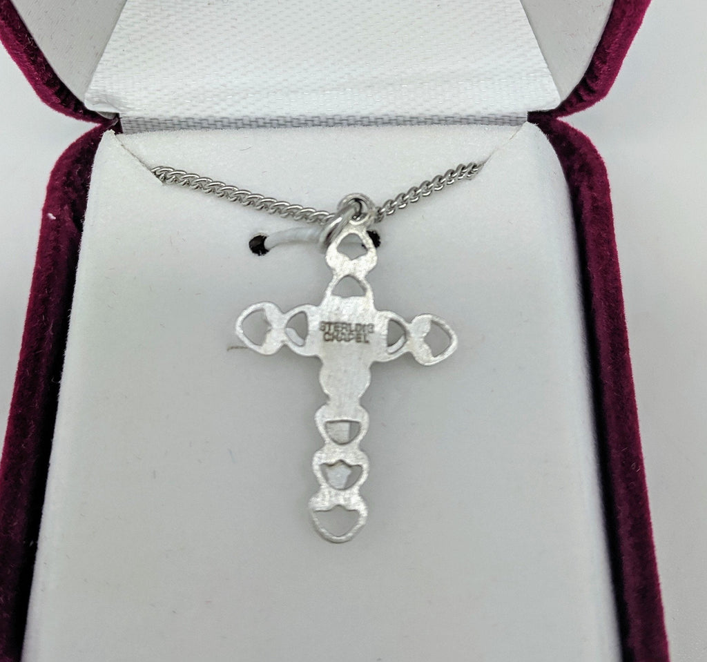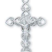 Experience the beauty and power of the Sterling Silver Crucifix (15/16") on 18" chain, thoughtfully designed and expertly crafted in radiant rhodium plating. Perfect for gift-giving, it comes in a charming gift box that adds to its meaningful presentation.