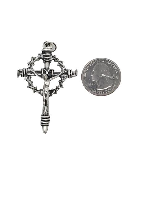 Experience the powerful symbolism of our Crown of Thorn Crucifix, with intricate metalwork and a unique design featuring a crown of thorns. Slightly larger than 2", this crucifix is a stunning addition to any religious collection.