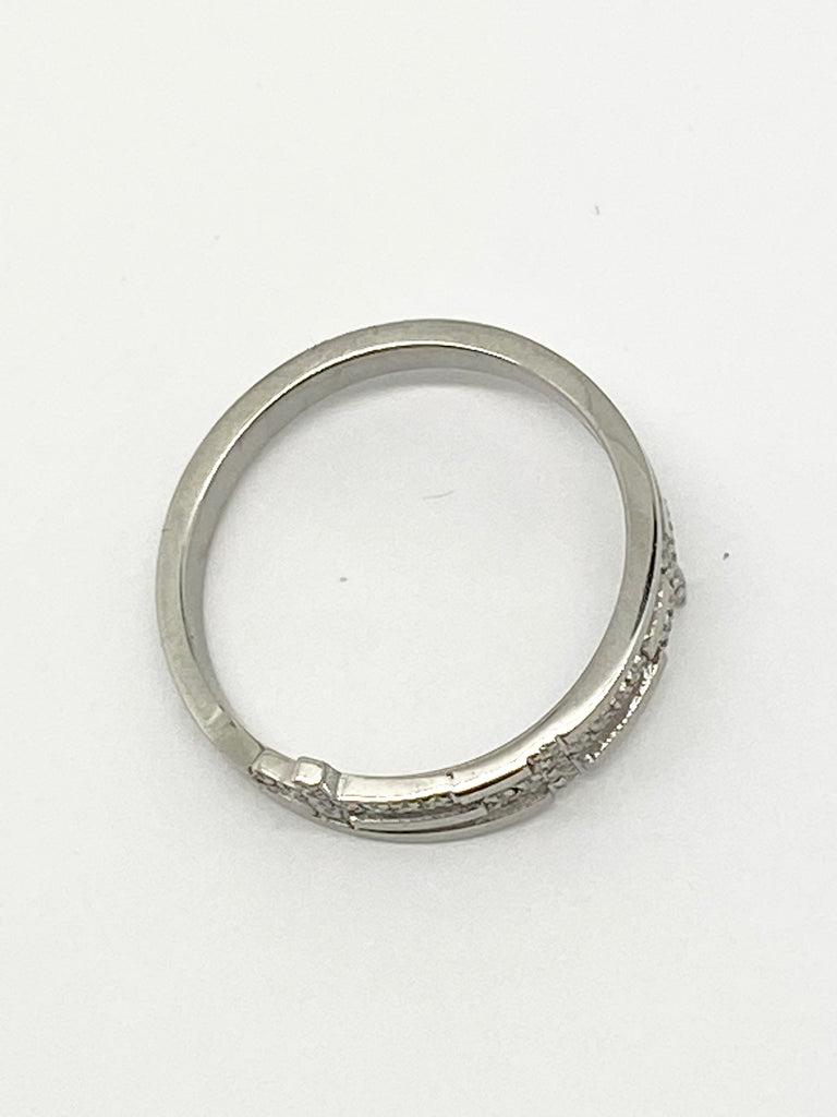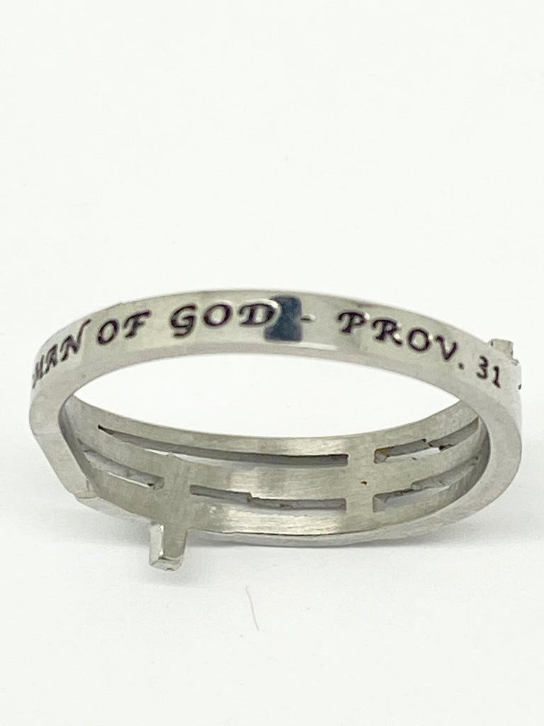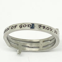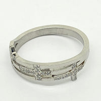 Beautiful stainless steel Holy Trinity Ring. Unique design of three crosses to represent the Holy Trinity. Cubic Zirconia stones accents throughout the cross designs.