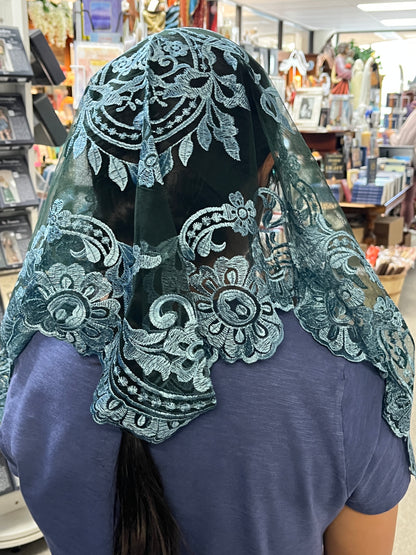 Deep Green Lace Mantilla Chapel Spanish Veil 51"
