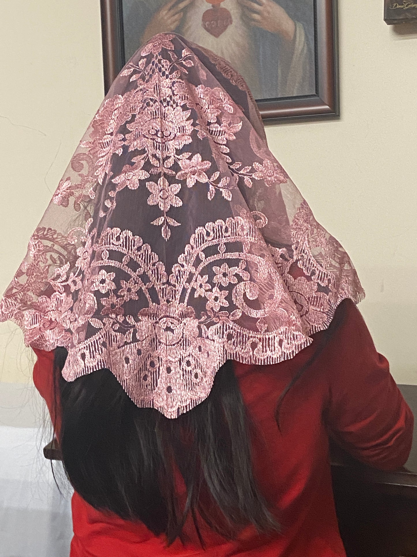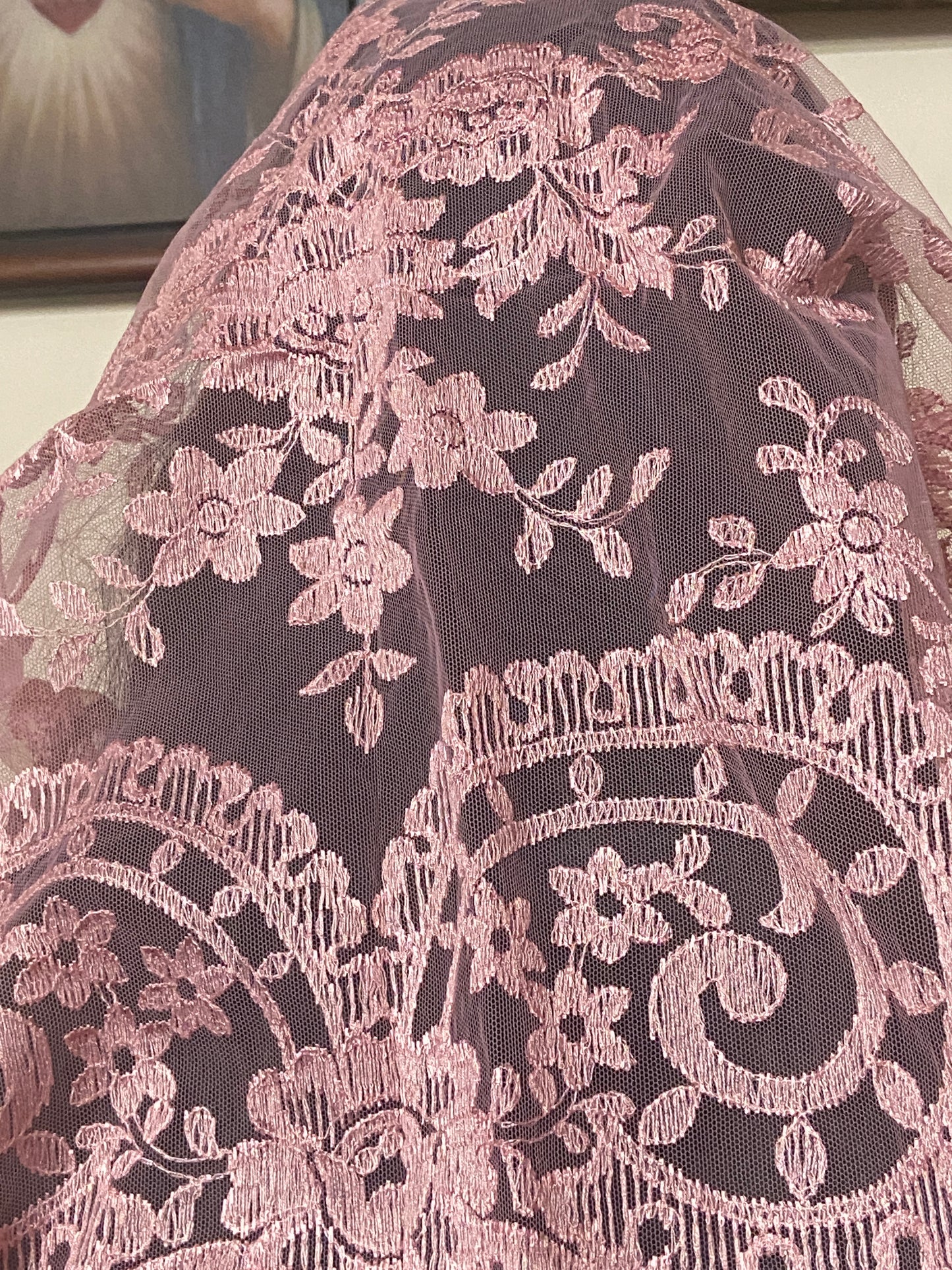 Dusty Rose Lace Mantilla Chapel Spanish Veil 51"