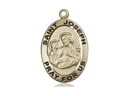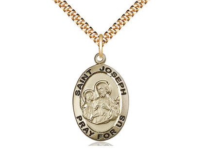 The Gold Filled St Joseph Pendant (1 x 5/8") features a 24-inch Gold Plate Heavy Curb Chain, adorned with a 1-inch tall St. Joseph Medal. This beautifully-crafted pendant is a symbol of strength and protection, making it the perfect gift for carpenters, those nearing the end of their life, and loving fathers. With a secure Lobster Claw Clasp, this pendant and chain set is a constant reminder of the devoted and powerful presence of St. Joseph in our lives.
