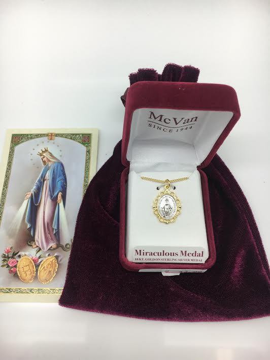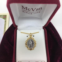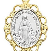 Gold Over Sterling Silver Miraculous Medal ,Two Toned 3/4" with Chain