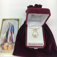 This Gold Over Sterling Silver Miraculous Medal comes on a rhodium plated 18" chain and is presented in a deluxe red velvet gift box. The two toned design adds a touch of elegance to the 3/4" size.