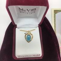 Gold over Sterling Silver Miraculous Medal on a 18" Gold plated chain. Comes in a deluxe red velvet gift box and exclusive velvet bag.
