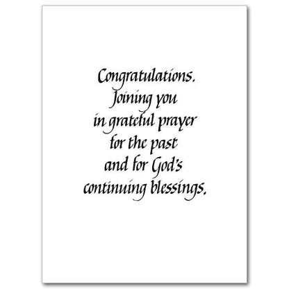 Gold stamped. Rejoice with those celebrating the anniversary of their profession to religious life. The cards measure 5.93" by 4.38".