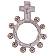 - Brushed Finish Stainless steel ring with cut out cross on two sides,