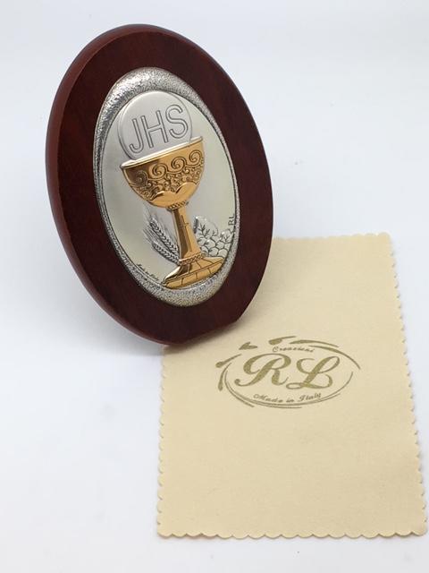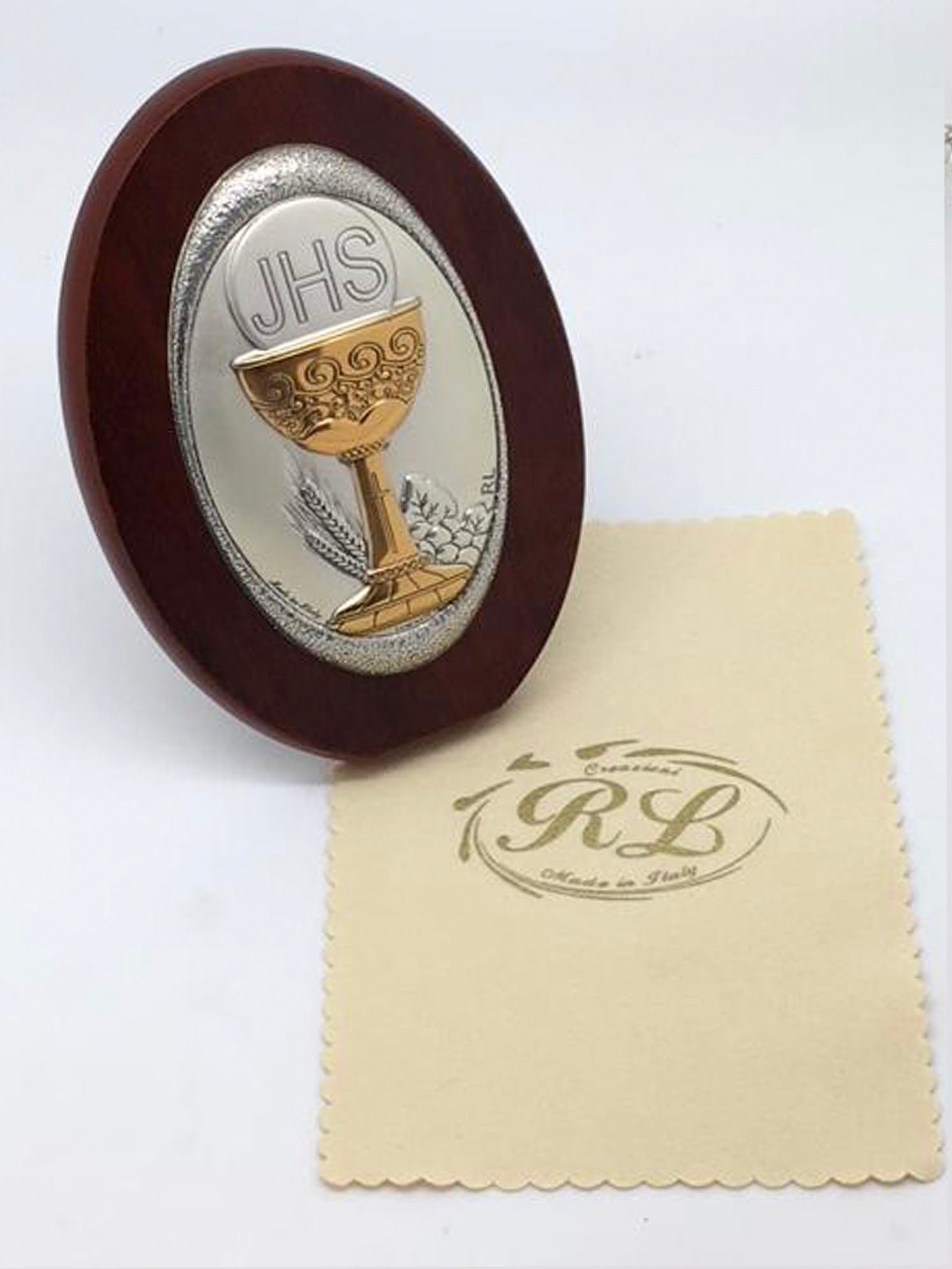 Beautiful Silver and Gold on Wood Icon. Made in Italy a wonderful keepsake for the remembrance of such a important day.