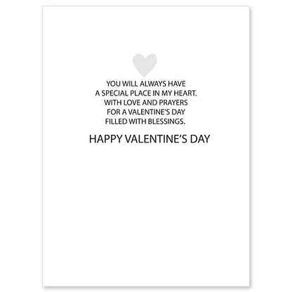 You will always have a special place in my heart. With love and prayers for a Valentine’s Day filled with blessings. Happy Valentine’s DayBible Verse: