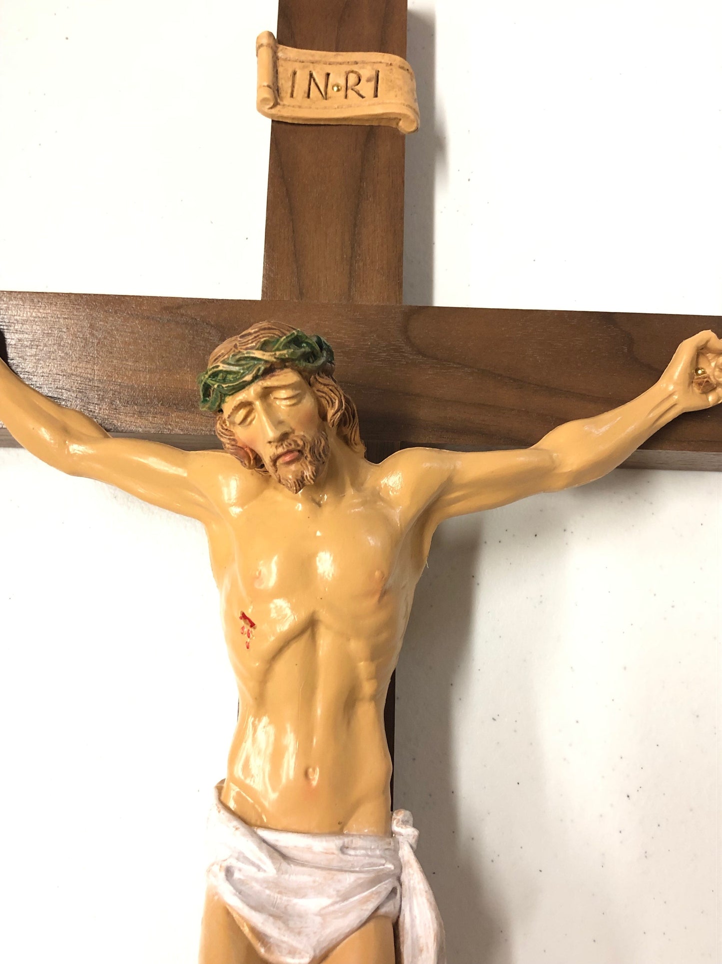 This exquisite crucifix is handcrafted from high-quality wood and adorned with a beautiful resin Italian Corpus. With its timeless and traditional design, it makes a perfect addition to any home or office. Gift it to a loved one or display it in your own space. Rich in both elegance and faith, this crucifix is truly a treasure.