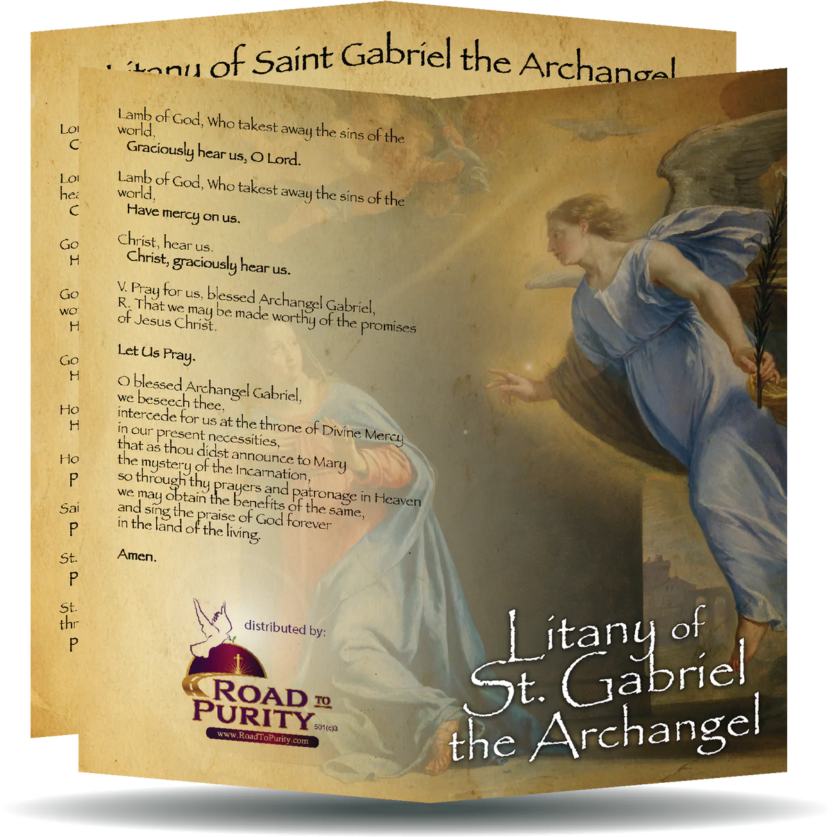 From the perspective of someone who passionately believes in the value of this product, this is the NEW Folded Litany of St. Gabriel the Archangel Card. Measuring 3" X 6" and featuring 3-panels, it is made of heavy card stock with a beautiful laminate finish. With its durable construction, this card is sure to inspire and uplift all who use it, making it an absolute must-have for any devotional collection!
