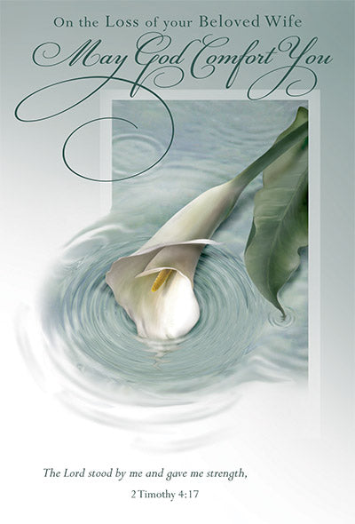 Inside says: May the care and concern of family and friends give you comfort during this time of sorrow. May it also console you to know that your wife is in God's care.Deepest Sympathy! 2 Timothy 4:17