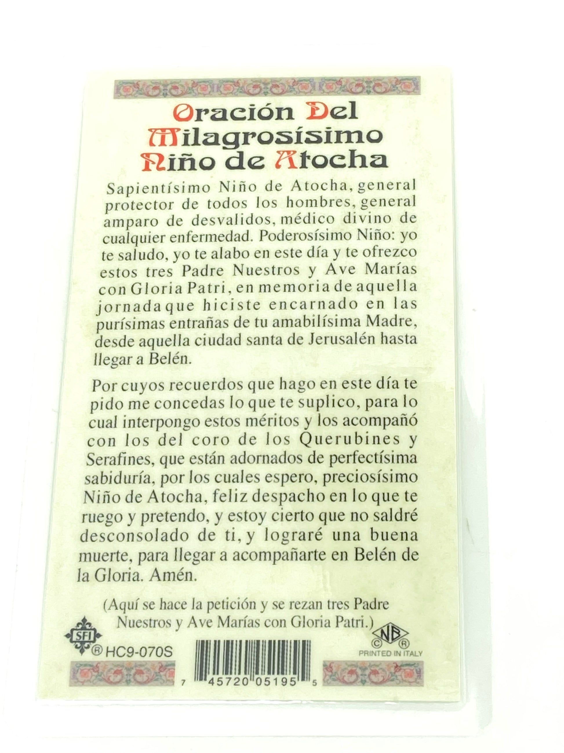 Milagrosisimo Nino de Atocha Tarjeta Sagrada laminada (Cubierta de Plástico)