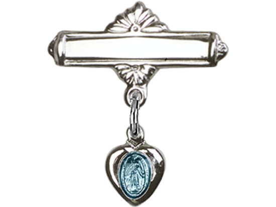 This sterling silver baby badge features a delicate Miraculous Medal charm, beautifully accented with blue epoxy for a soft yet striking look. The polished badge pin adds a touch of elegance, making it a meaningful and stylish keepsake for any occasion. Perfect as a gift for a baby or young child, it symbolizes protection and blessings, carrying both religious significance and timeless beauty.