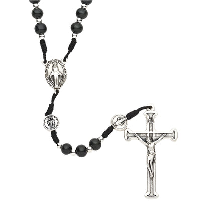 Miraculous Medal Black String Rosary 18.25" L
