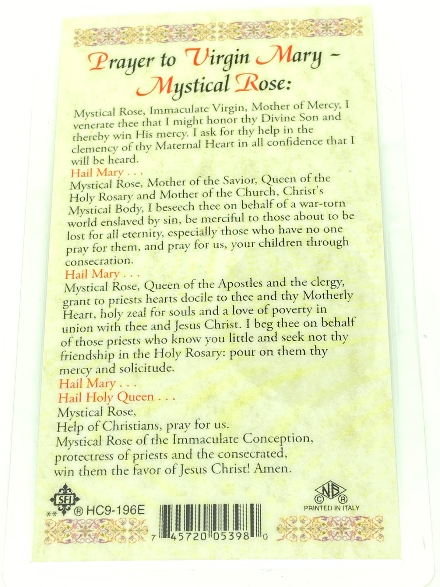 Mystical Rose Laminated Holy Card (Plastic Covered)
