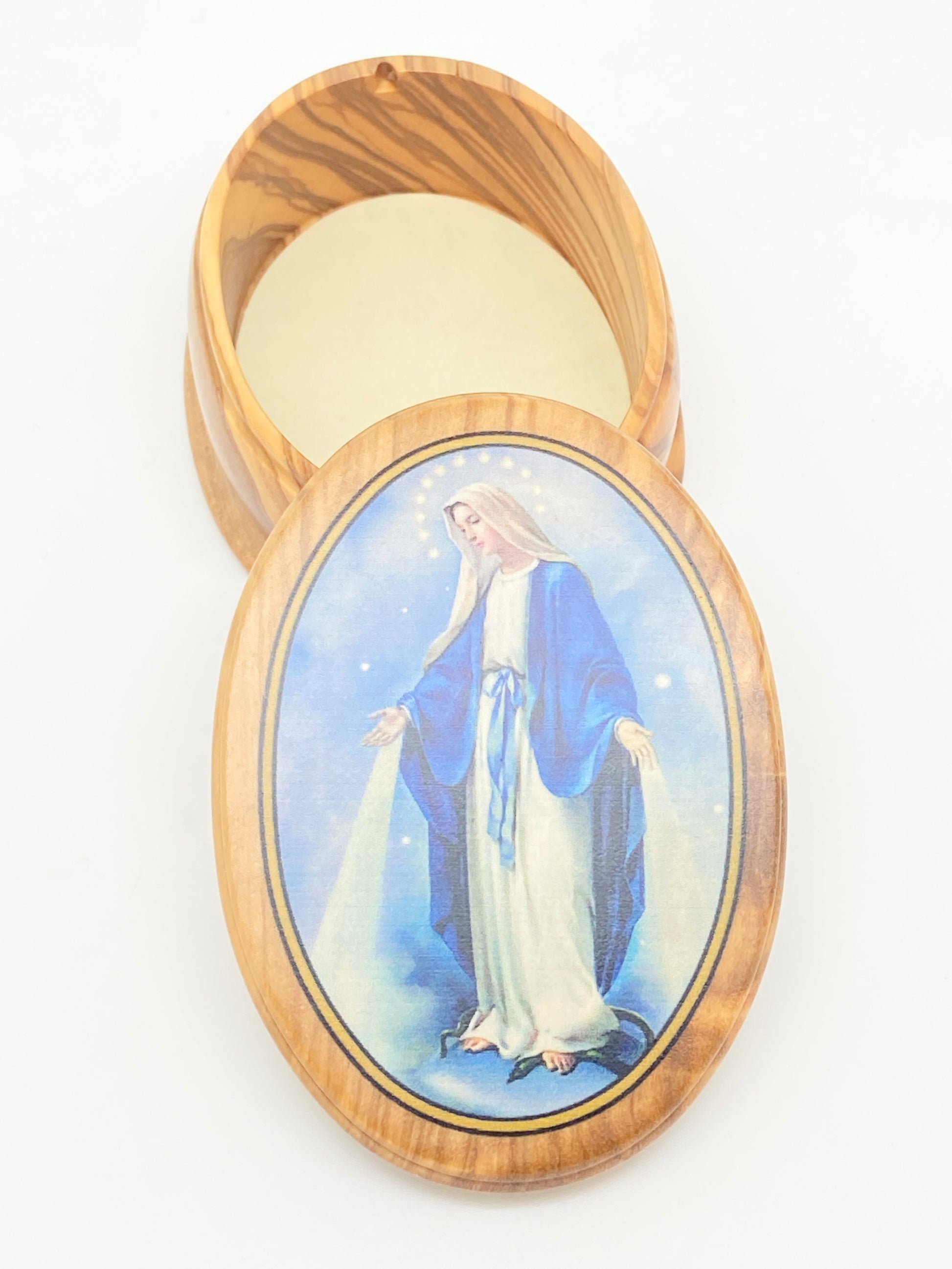 Our Lady of Grace Olive Wood Premium Crafted Rosary Box