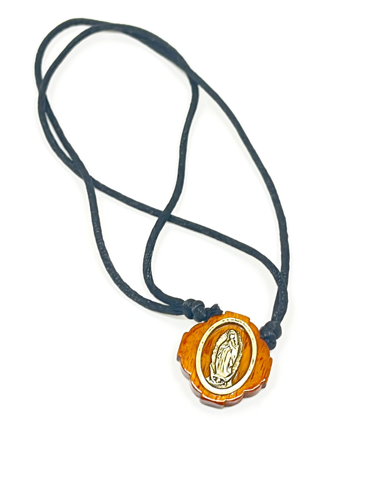 Our lady of Guadalupe image on wood background and corde necklace that adjust wiht. slip not. Great gift ideas for groups.