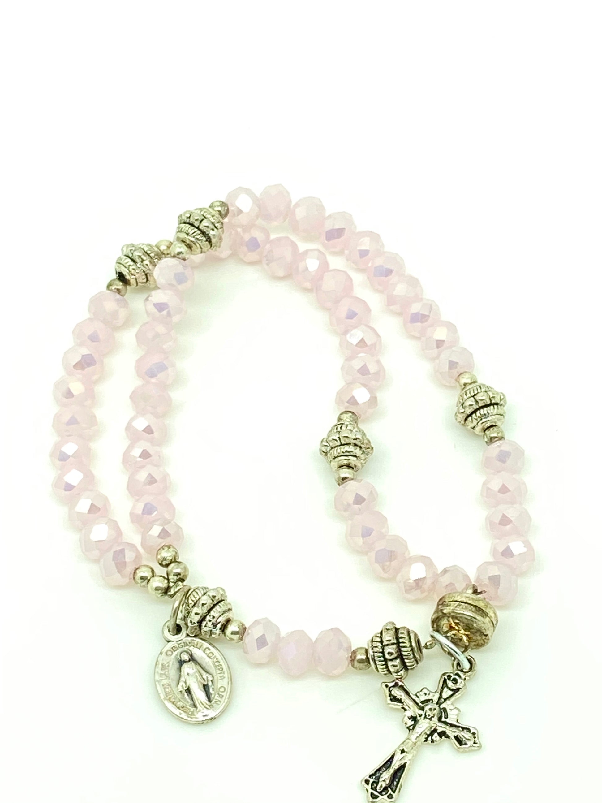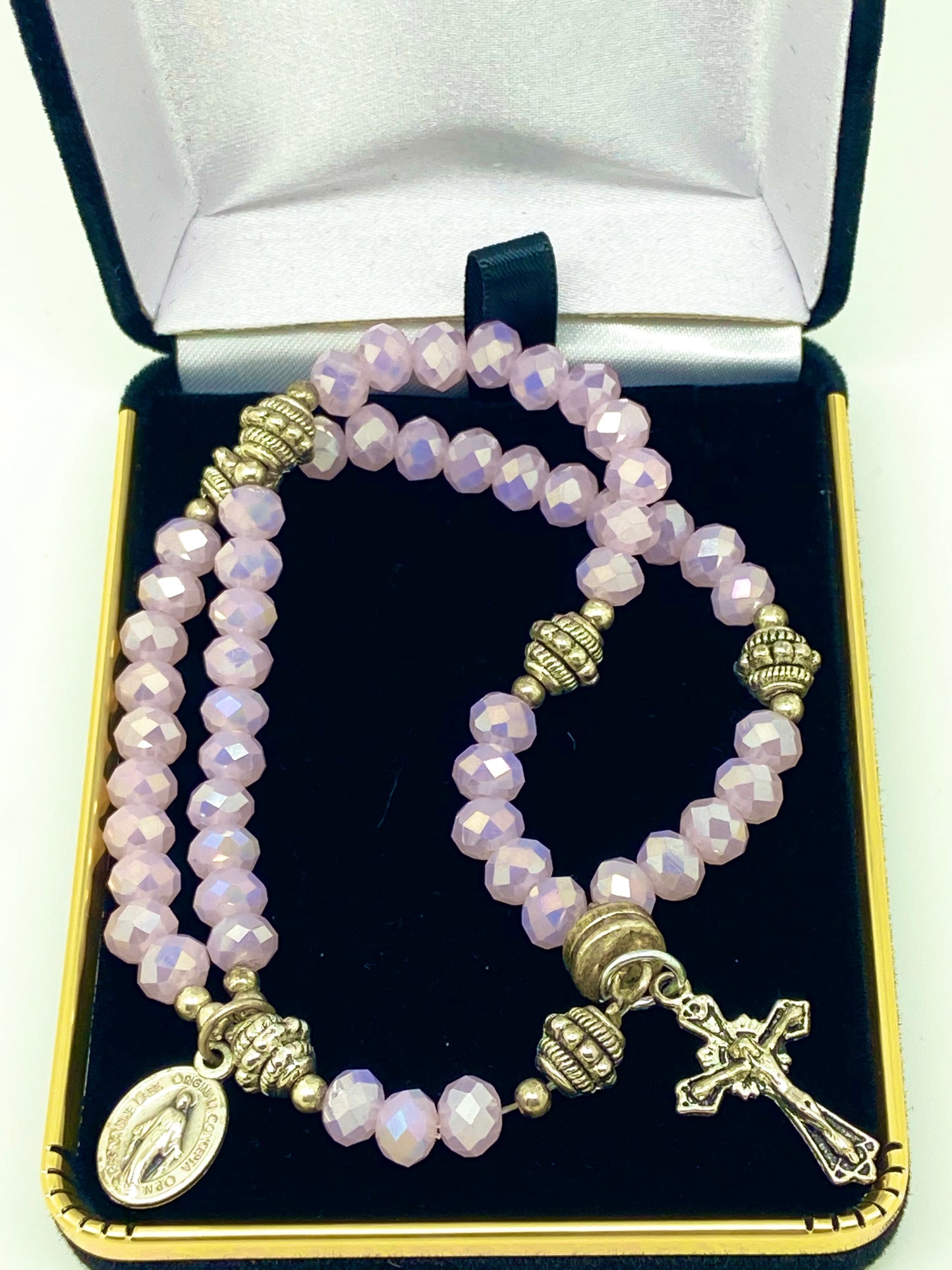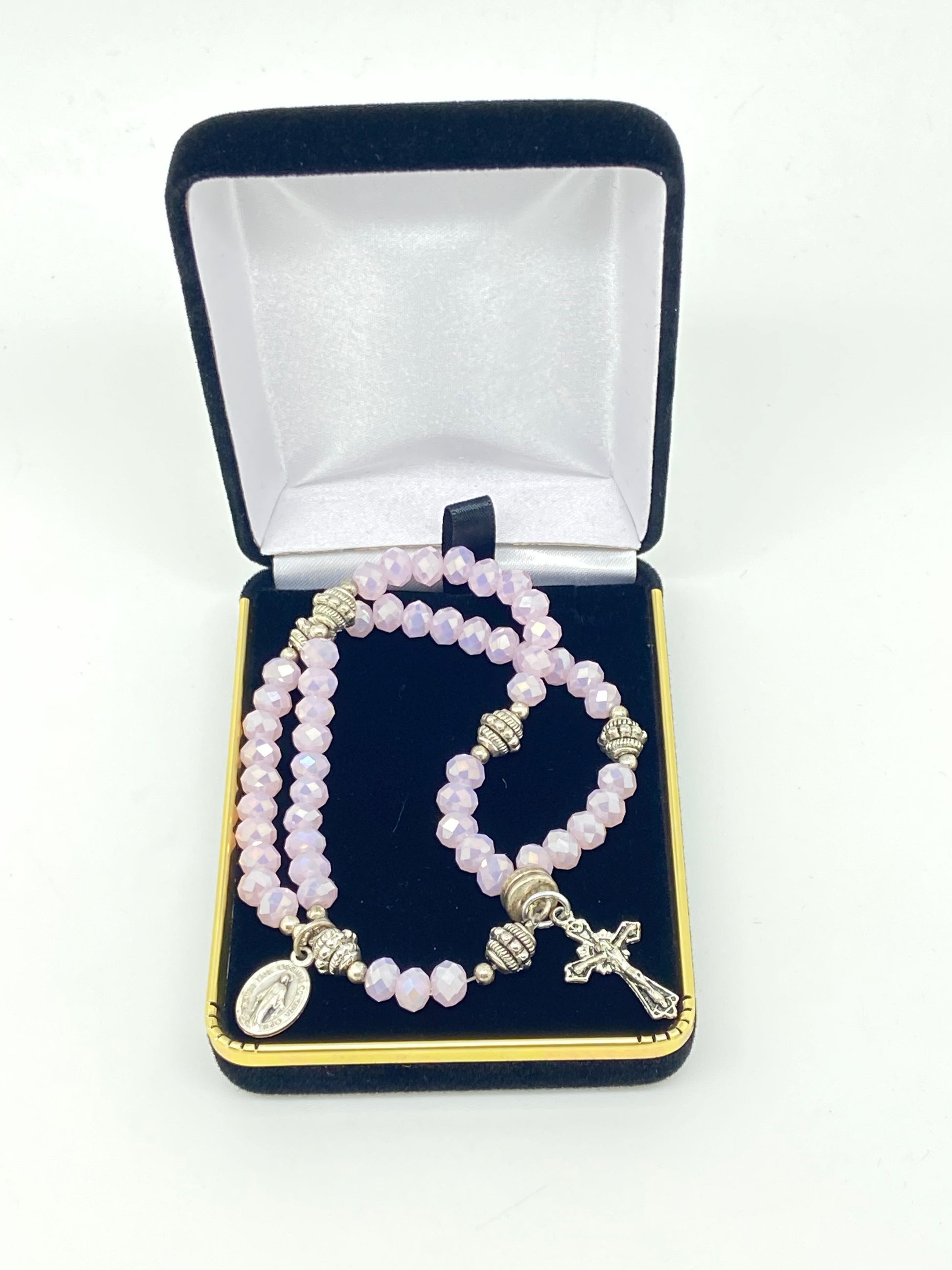 The Wrist Rosary is an original design incorporating a complete five decade rosary, just as Our Blessed Mother designed it. The small rosary wraps around the wrist and closes with a strong magnetic clasp. The magnet is easy to operate so you can always be ready to pray. Comes in a deluxe gift box.
