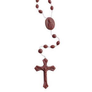 Plastic rosary The centerpiece snaps open so you can wear it as a necklace. Great for giveaways.