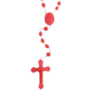 The centerpiece of this plastic rosary features a snap opening, allowing it to be worn as a necklace. A perfect choice for promotional giveaways.