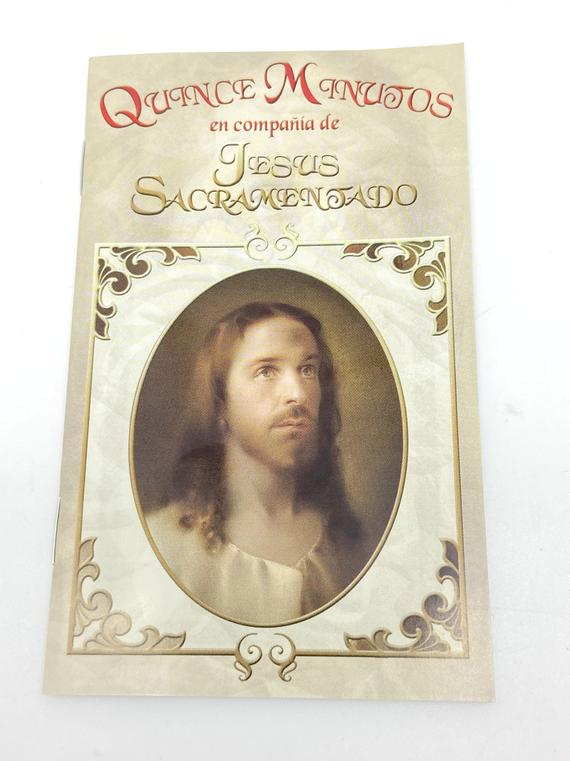 Este pequeño libro presenta Quince Minutos Con Jesús Sacramentado, en versión biligue (inglés y español) publicado por la Librería San Pablo y SOBICAIN