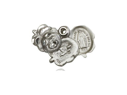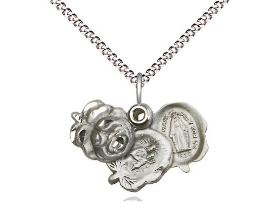 Sterling Silver Rosebud Scapular Pendant on a 18 inch Light Rhodium Light Curb Chain.