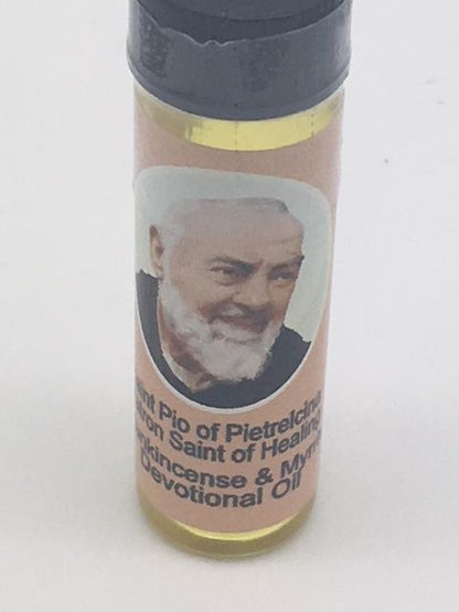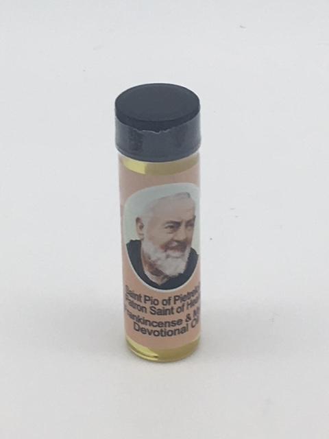 Experience the powerful scent of frankincense and myrrh with St. Padre Pio Devotional Oil. This .25 oz vial comes complete with a matching prayer card and velvet bag, making it the perfect spiritual tool for any believer. Trust in the blessings and anoint yourself with this sacred oil today! This item CANNOT be sold Internationally!