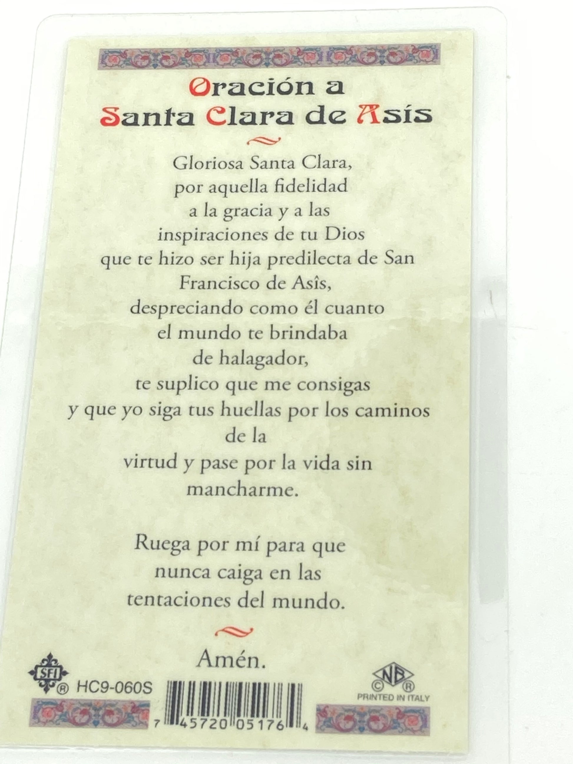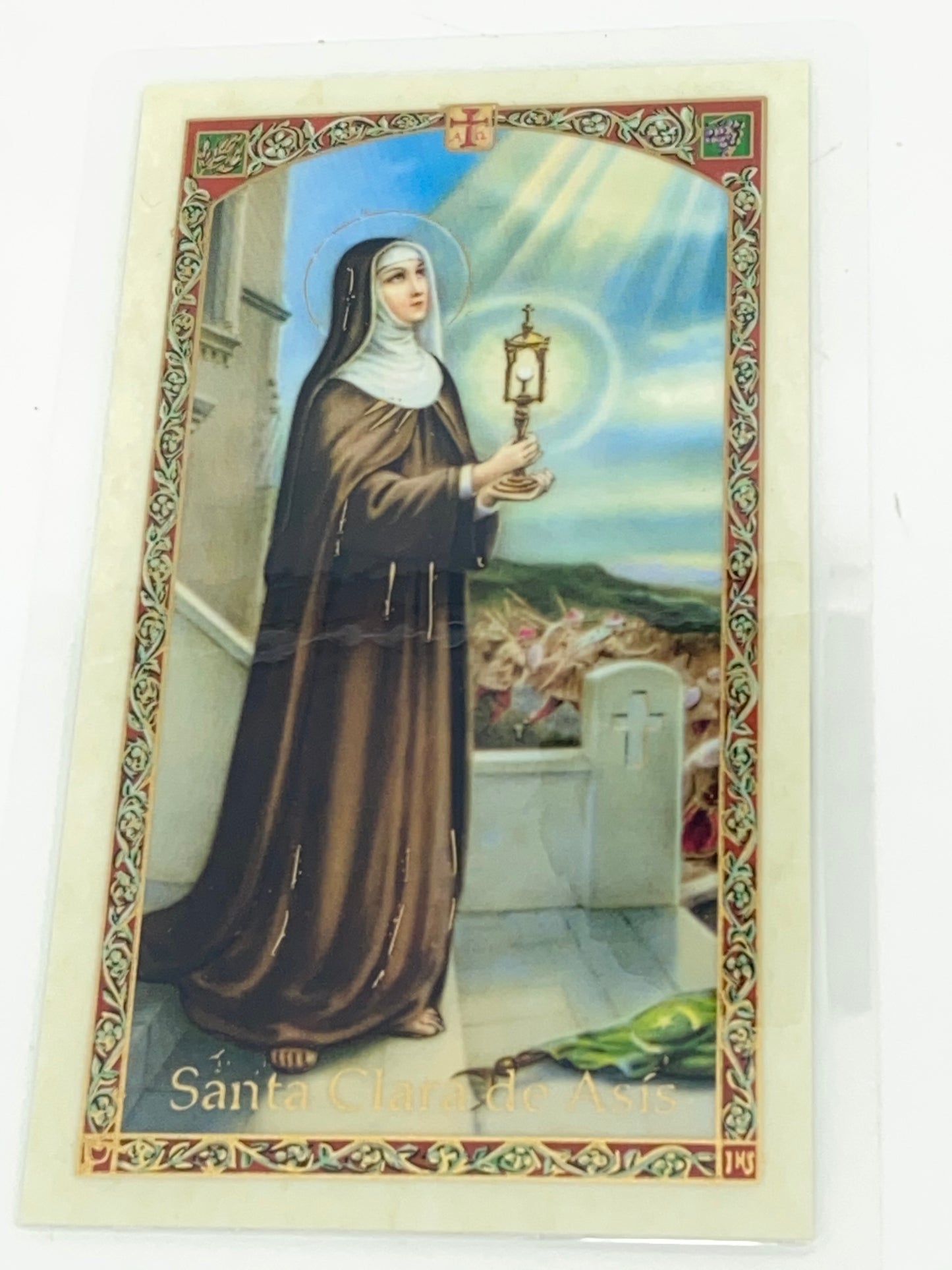 Santa Clara de Asis Tarjeta Sagrada laminada (Cubierta de Plástico)