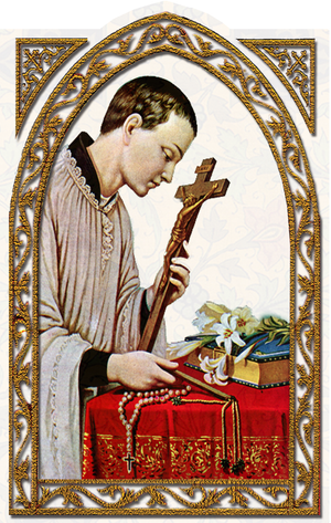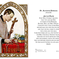 St. Aloysius Gonzaga pictured on the front, the Act of Faith on the back. Beautifully embossed paper card.