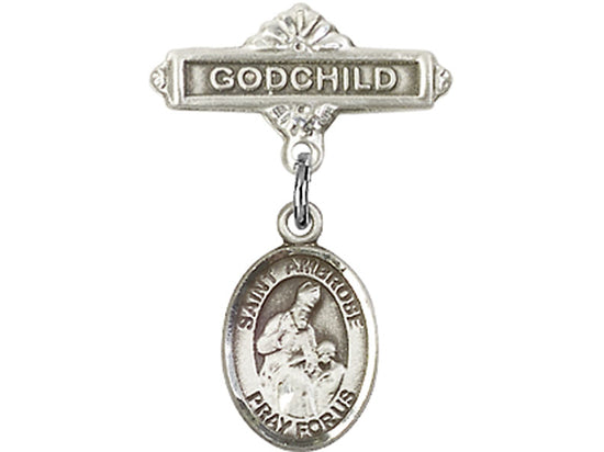 This sterling silver baby badge features a St. Ambrose charm and a Godchild badge pin, making it a meaningful gift for a special occasion. St. Ambrose, the Patron Saint of beekeepers and candlemakers, is honored through this beautifully crafted piece. Its elegant design and religious significance make it a perfect keepsake for a godchild, symbolizing faith and protection. A timeless and thoughtful addition to any collection.