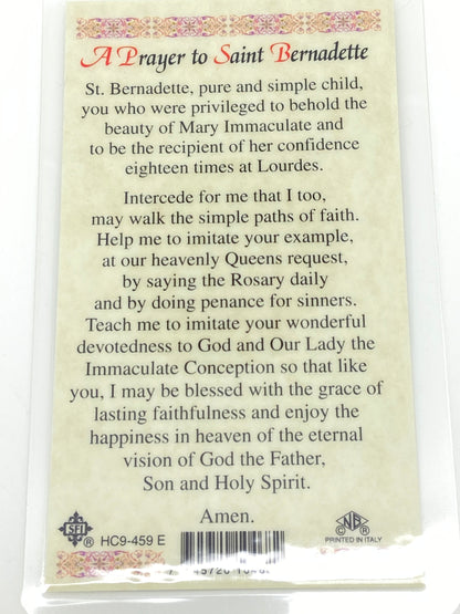 St. Bernadette Laminated Holy Card (Plastic Covered)