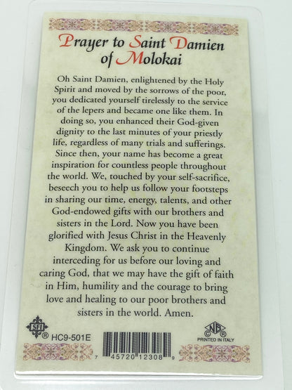 St. Damien Molokai Laminated Holy Card (Plastic Covered)