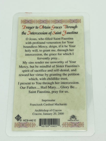 Carry the inspiration of St. Faustina with you wherever you go. This durable laminated holy card features a striking image paired with a meaningful prayer, perfect for daily devotion, gifting, or displaying in your home. The protective plastic coating ensures it withstands everyday use while keeping your spiritual companion looking pristine for years to come.