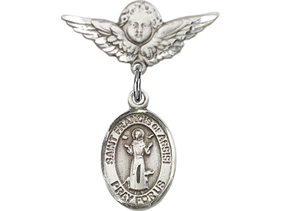 This sterling silver baby badge features a delicate St. Francis of Assisi charm, renowned as the patron saint of animals and Catholic action. The badge is adorned with an angel with wings, symbolizing divine protection and care. Crafted from high-quality sterling silver, this piece offers both elegance and lasting significance, making it a meaningful keepsake for those seeking to honor faith and compassion. Ideal for a young child, it combines spirituality with a beautiful, timeless design.