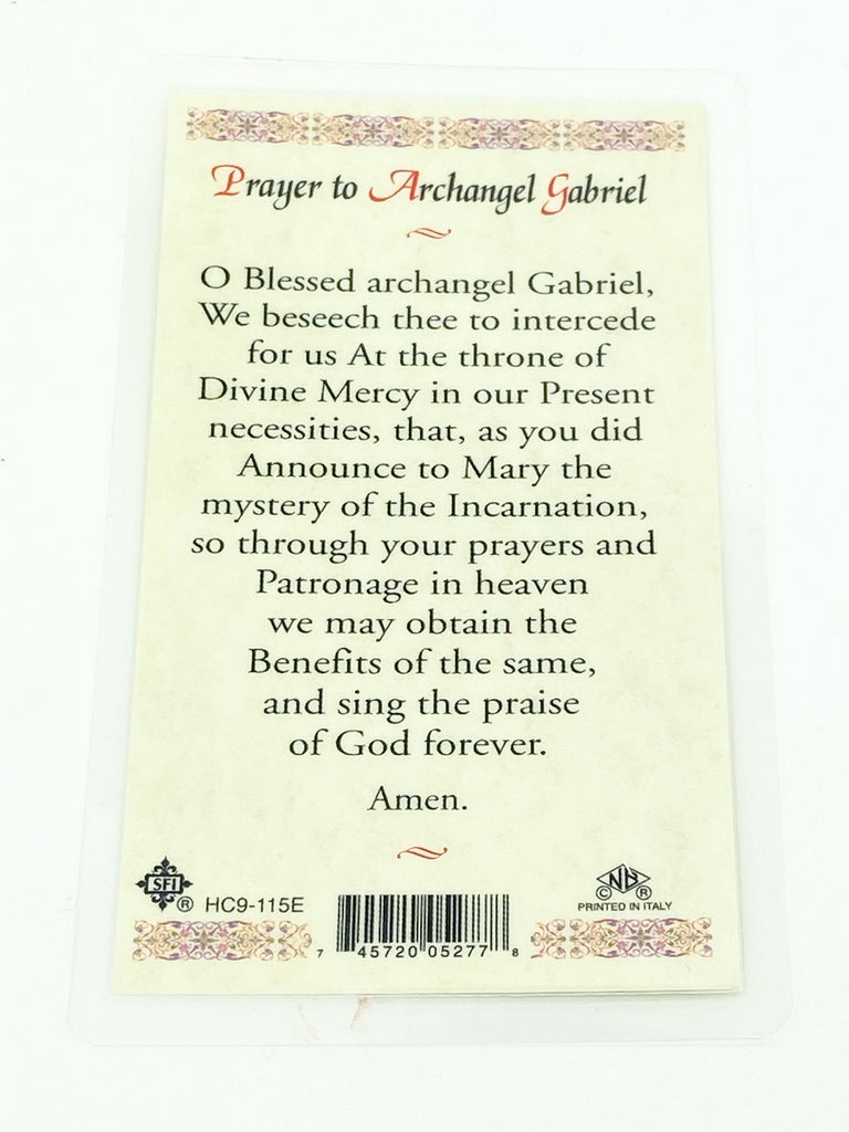 St. Gabriel the Archangel Laminated Holy Card (Plastic Covered)