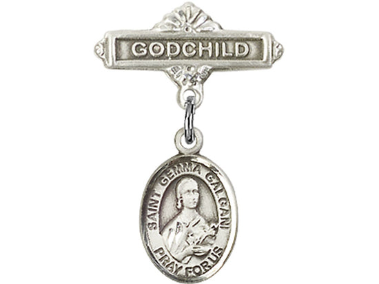 This sterling silver baby badge features a delicate St. Gemma Galgani charm, making it a beautiful keepsake for a godchild. Known for her deep devotion and miraculous intercessions, St. Gemma is a symbol of faith and resilience. This badge serves as a meaningful reminder of her spiritual guidance and protection. A perfect gift to cherish and inspire.