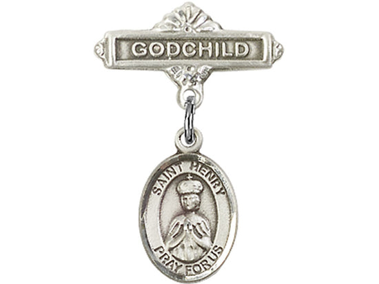 This sterling silver baby badge features a beautiful St. Henry II charm, symbolizing his role as the Patron Saint of the handicapped and childless. The badge also includes a Godchild pin, making it a thoughtful and meaningful gift for a godchild. Crafted from high-quality sterling silver, this piece serves as a cherished keepsake, representing both faith and love. Ideal for special occasions like baptisms, it holds deep significance for the recipient.