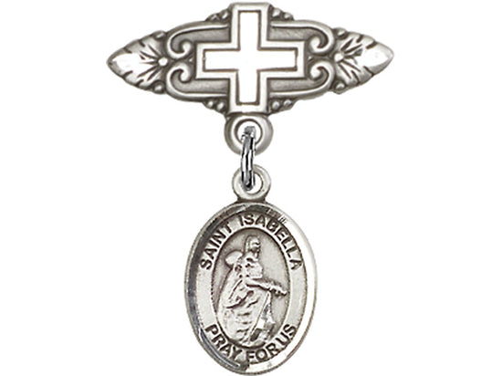 This Sterling Silver Baby Badge features a beautifully crafted St. Isabella of Portugal charm, symbolizing her role as the Patron Saint of Peace and Charities. With a delicate cross pin, it serves as a meaningful keepsake, offering spiritual protection and guidance. Perfect for a child's first religious milestone, this badge combines elegance and devotion, making it a thoughtful gift for any occasion. The high-quality sterling silver ensures lasting durability and a timeless reminder of faith.