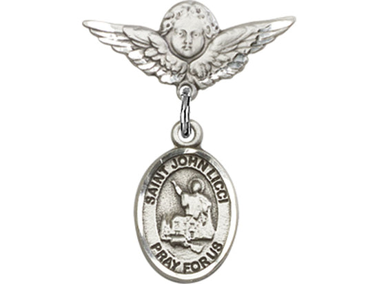 This Sterling Silver Baby Badge features a St. John Licci charm, the Patron Saint of head injuries, offering spiritual protection and comfort. Paired with an angel with wings, the badge symbolizes divine guidance and healing. Perfect for those seeking solace or recovery, this piece combines faith and symbolism in a beautiful, meaningful design.