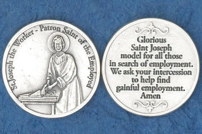 Silver tone Pocket Token of Saint Joseph the Worker. Made in Italy.