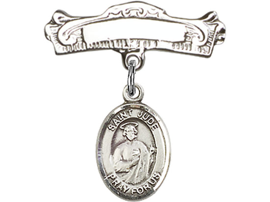 This sterling silver baby badge features a delicate St. Jude Thaddeus charm, beautifully set on an arched polished pin. St. Jude, the Patron Saint of Desperate Situations, is known for his powerful intercession in times of need. Crafted from high-quality sterling silver, this badge serves as both a symbol of faith and a meaningful reminder of hope in challenging moments. Perfect for those seeking spiritual comfort, it makes a thoughtful gift for any occasion.