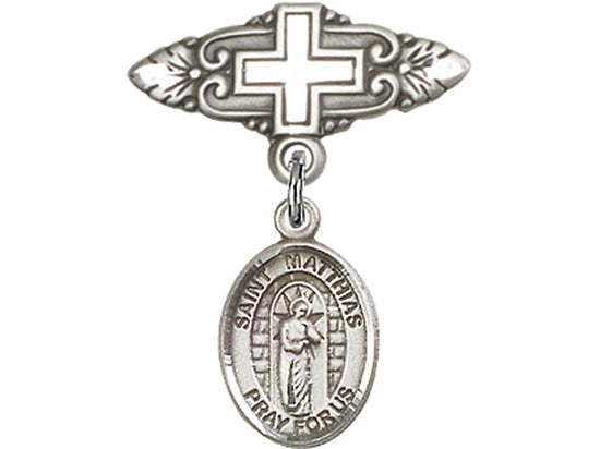 This beautiful Sterling Silver Baby Badge features a St. Matthias the Apostle charm and a cross pin. St. Matthias, the patron saint of alcoholism and carpenters, offers a symbol of strength and faith. Crafted from high-quality sterling silver, this badge makes a meaningful and lasting gift for any occasion.
