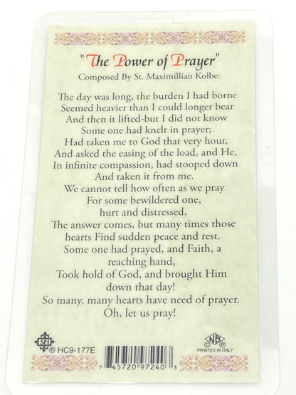 Carry the inspiration of St. Maximilian Kolbe with you wherever you go. This durable laminated holy card features a striking image paired with a meaningful prayer, making it perfect for daily devotion, gifting, or displaying in your home. The protective plastic coating ensures it withstands regular handling while keeping the sacred image vibrant and pristine for years to come.