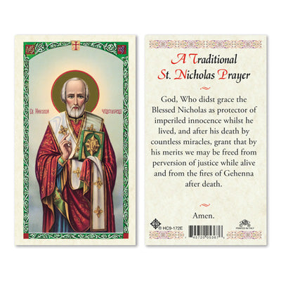 St Nicholas beautiful laminated Holy Card of your Favorite Saint, with picture and prayer.