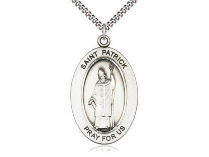 Sterling Silver St. Patrick Pendant on a 24 inch Light Rhodium Heavy Curb Chain.