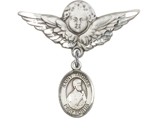 This sterling silver badge features a detailed charm of St. Thomas the Apostle, the Patron Saint of architects and blind people, along with a delicate angel with wings pin. Crafted from high-quality sterling silver, this piece combines spiritual significance with timeless elegance. It serves as a meaningful keepsake or a thoughtful gift, symbolizing faith, protection, and guidance. Perfect for those with a devotion to St. Thomas or in need of a reminder of his patronage.
