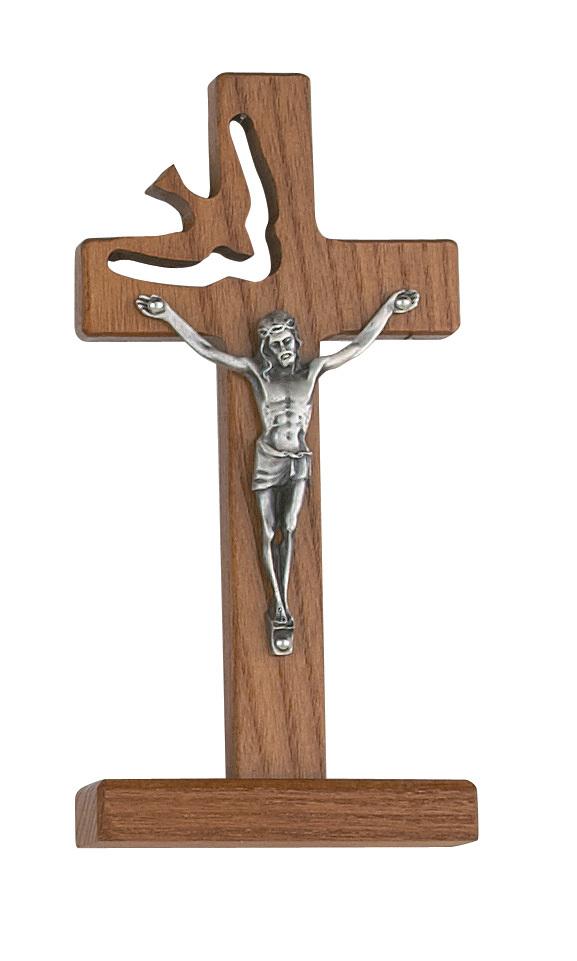 Beautiful Standing Crucifix Walnut Cross and Silver Corpus with Holy Spirit Dove carved in the Cross.