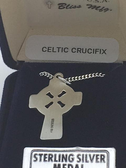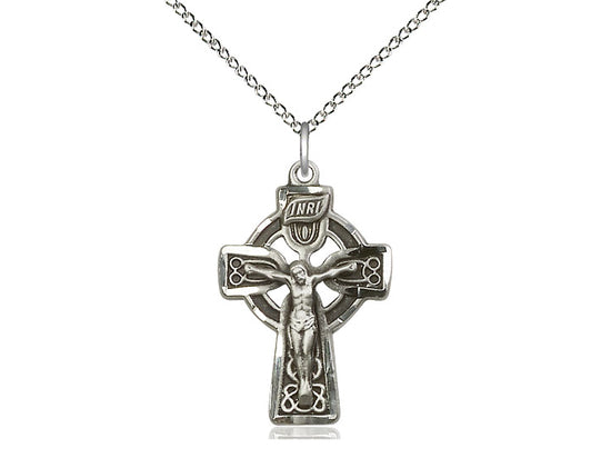 Sterling Silver Celtic Crucifix Pendant on a 18 inch Sterling Silver Light Curb Chain